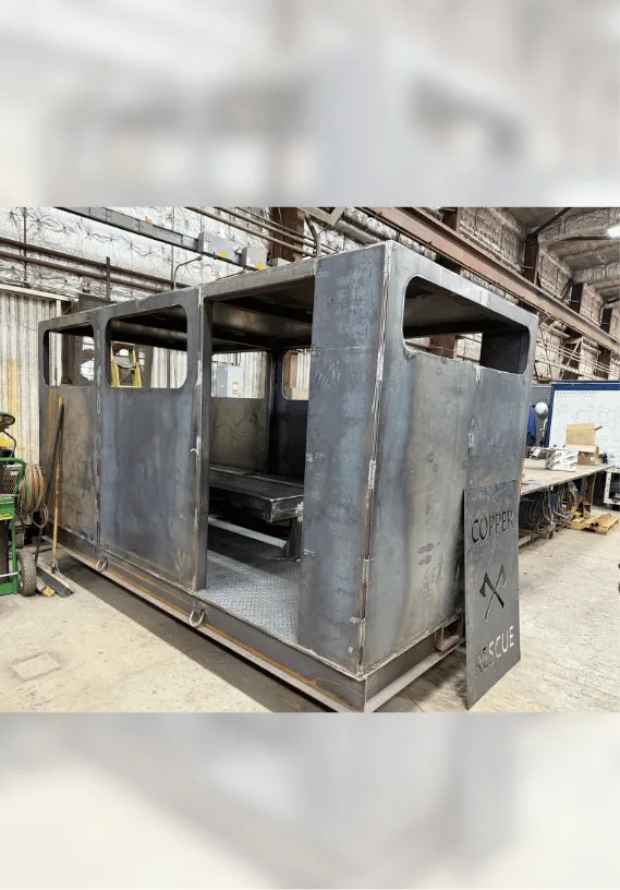 At the Resolution Mine, we designed and fabricated rail cars that the Emergency Response team will use to get injured people off-site.